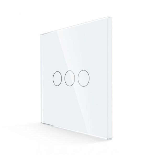 Grūdinto stiklo sensorinis tripolis jungiklio dangtelis Feelspot FSSD3W gali būti komplektuojamas su bet kuriuo jungikliu, rozete ir kitais lizdais.
