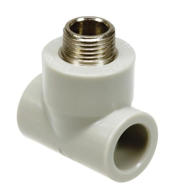 Prekės ženklas- Sanitas. Medžiaga- Polipropilenas (PP). Spalva- Pilka. Dalis skirta- Karštam vandeniui, Šaltam vandeniui. Jungčių skaičius- 3. Pasvirimo kampas- 90 – 90°. Darbinė temperatūra- 5 – 60°C. Papildoma informacija- Su išoriniu metaliniu sriegiu. Nenaudoti pakulų.