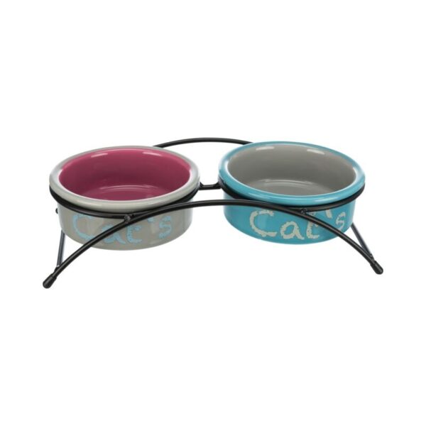 TRIXIE Dubenėlių kompl., keramika-metal., 2×0.3 l, ø 12 cm-26x7x13 cm, šv.pilka-rausva