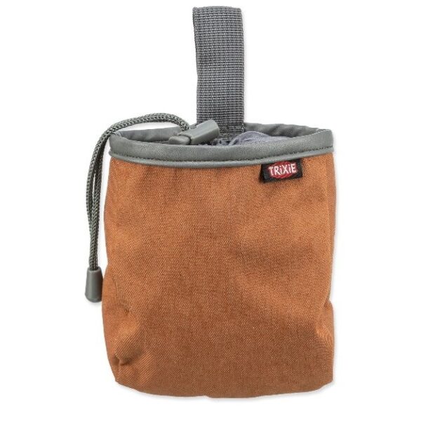 Uždaromas krepšiukas nešiotis skanėstams. Spalva – ruda.
