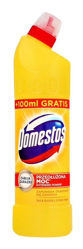 Prekės ženklas- Domestos. Tūris- 0.75 l. Kvapų šeima- Citrusų. Kvapas- Citrinų. Vienetai pakuotėje- 1. Papildoma informacija- Naikina bakterijas, purvą ir nešvarumus. Higieniška švara. Su citrinų aromatu. Biocidinius produktus naudokite atsargiai. Prieš naudodami visada perskaitykite etiketę ir informaciją apie produktą..