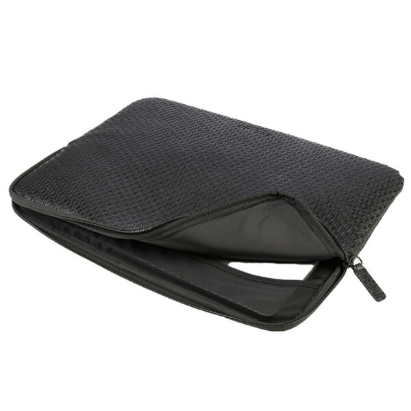 Elegant and soft to the touch cover made of eco-leather with decorative woven pattern. Equipped with Anti-Slip System®, a special internal elastic band, thanks to which the cover optimally adheres to the device case, while protecting it from mechanical damage when closing or opening zippers.
