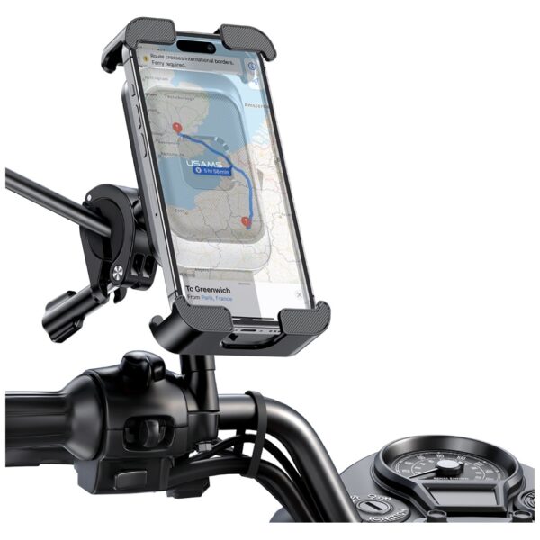 USAMS ZJ082 to solidny uchwyt na telefon do roweru, skutera i motocykla z pełno-zakresowym, stabilnym chwytem. Konstrukcja umożliwia obrót o 360°, więc łatwo ustawisz ekran w pionie lub poziomie. Montaż wykonasz na kierownicy albo przy trzpieniu lusterka – bezpiecznie i bez kombinowania.