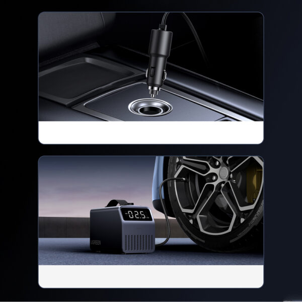 Ugreen 150 PSI 12V Electric Car Tire Pump with Digital Display – pilkos spalvos
