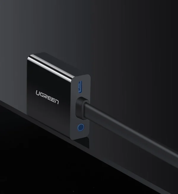Ugreen HD Converter is an HDMI to VGA adapter with additional micro USB (for power) and audio AUX 3.5mm mini jack connectors that allows you to connect a new laptop, console or media player to an older TV, monitor or projector. A great gadget that allows you to use the latest mobile equipment on older receivers. You don't have to buy the latest TV model to send a high-quality signal from your notebook to it.