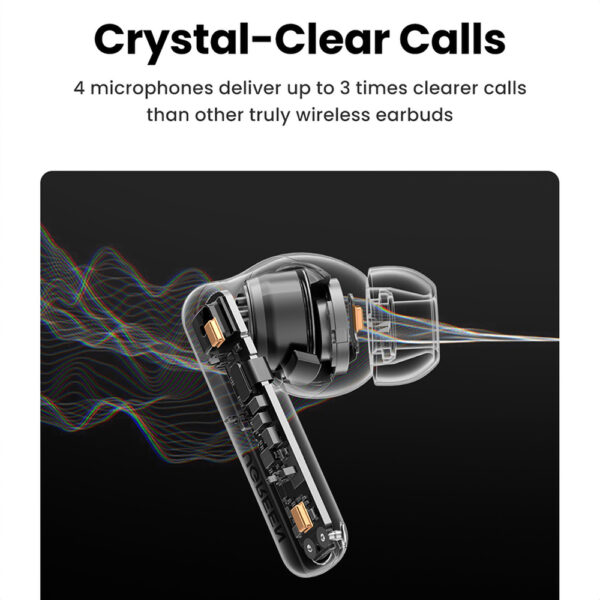 Ugreen HiTune T6 wireless headphones with ANC function provide unique isolation from external sounds and noise up to 48 dB. Thanks to this technology, you can enjoy your favorite songs even in noisy environments. And thanks to the use of four built-in microphones, Ugreen HiTune T6 headphones significantly improve the voice sound quality during phone calls. This technology makes every conversation up to three times cleaner compared to other headphones on the market.