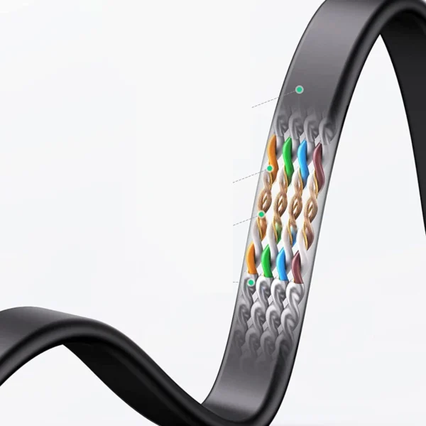 Signal quality is key to a stable internet connection. Ugreen NW102 cable guarantees a stable signal thanks to twisted pairs of wires that counteract external electromagnetic interference. Low resistance and seven conductive cores in each pair ensure minimal signal loss, which translates into reliable data transmission. Additionally, cross insulation and copper core protect against signal loss, which is crucial over long distances.