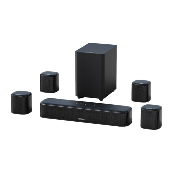 Ultimea BassMX and Ultimea SurroundX technologies are responsible for clear bass and precise surround sound reproduction. The four-inch wired subwoofer delivers deep, low tones that emphasize the action and add realism to every scene. The whole system ensures high-quality sound reproduction, maintaining the clarity of dialogue and the detail of effects.