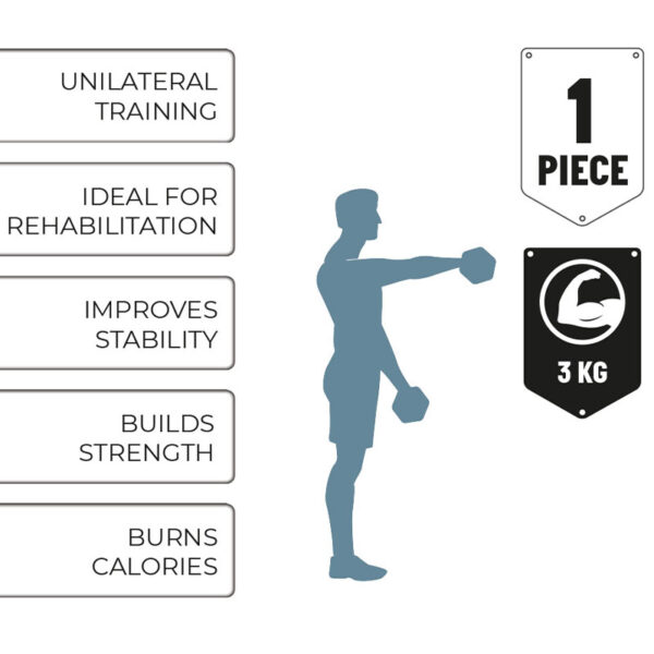 It will perfectly complement your arm and upper body muscle training, as well as support the improvement of motor coordination. You will use it during general development or fitness exercises. The dumbbell will be ideal for both beginners and advanced athletes.