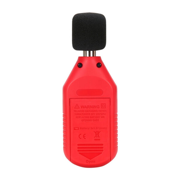 The device measures sound levels from 30 dB to 130 dB with an accuracy of ±1.5 dB and a resolution of 0.1 dB, making it possible to evaluate both quiet and noisy environments. The UT353 offers two sampling modes: fast (125 ms) and slow (1,000 ms), so you can adapt the measurement to changing acoustic conditions.