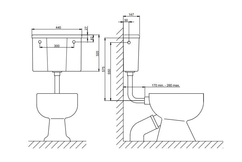 Prekės ženklas- Tycner. Artikulas- 410. Medžiaga- Plastikas. Spalva- Balta. Ilgis- 45 cm. Plotis- 16 cm. Aukštis- 34 – 34cm. Vandens bakelio talpa- 9 l. Vandens padavimo mechanizmas- Šoninis. Vandens nuleidimo sąnaudos- 9 – 9l. Garantija- 24 mėn.