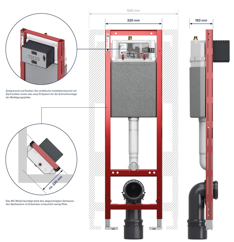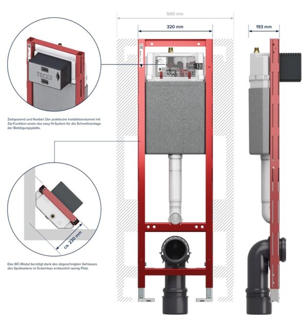 Prekės ženklas- Tece. Modelis- Base. Artikulas- 9400440. Medžiaga- Metalas. Plotis- 32 – 32cm. Aukštis- 112 – 112cm. Storis- 13.5 – 13.5cm. Montuojama į- Mūrą. Su bakeliu- Taip. Garantija- 24 mėn. Papildoma informacija- Unitazo modulis, montuojamas atskirai, tinka kaip prie sienos statomas modulis esant mūro sienoms, taip pat tvirtinti metalinėse arba medinėse karkasinėse sienose..