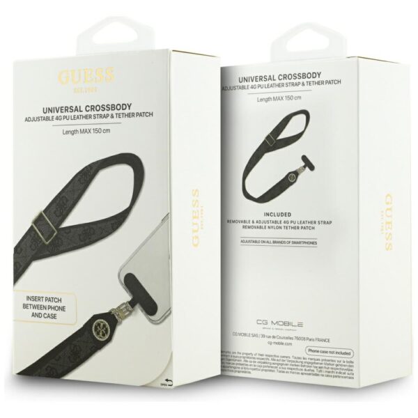 Guess CBDY 4G Tether Patch Strass Metal Logo is an elegant crossbody lanyard that combines stylish design with practical functionality. Made of high-quality eco-leather, decorated with the iconic 4G pattern and a metal Guess logo adorned with sparkling crystals, it’s a fashionable accessory that highlights your individual style.
