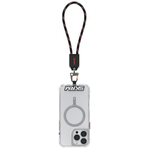 Smycz Skinarma Dyno Ve to połączenie minimalistycznego, designerskiego wzornictwa z maksymalną funkcjonalnością. Dzięki solidnemu metalowemu karabińczykowi masz pewność, że telefon, klucze czy inne akcesoria zawsze będą w zasięgu ręki.