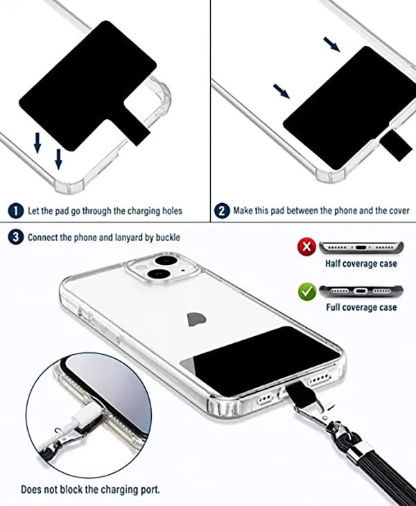- Wkładka na telefon trzyma urządzenie pewnie i stabilnie, eliminując ryzyko przypadkowego upuszczenia lub zgubienia smartfona