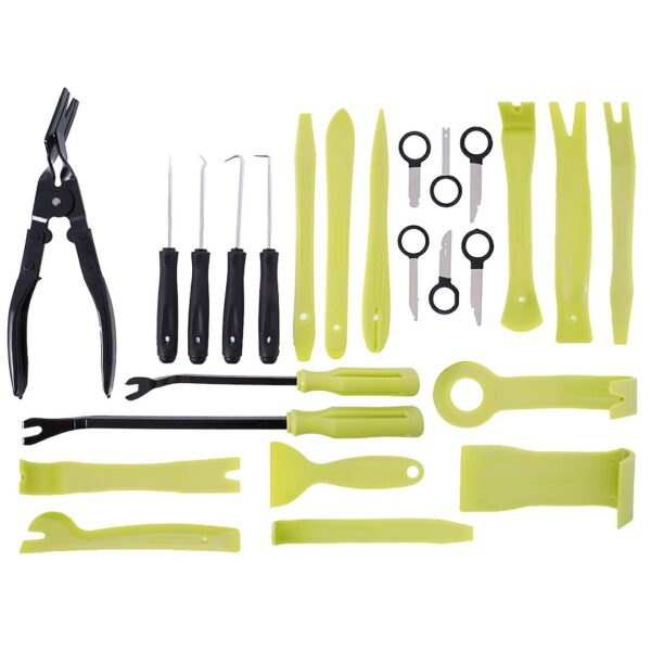The set includes keys and ejectors, thanks to which you can easily remove the pins from each socket or cube of the electrical installation. The set includes universal pullers that allow you to effectively disassemble radios, displays, navigation, etc. without damaging the upholstery.