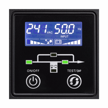 - Intuitive user interface with an LCD panel that provides, on a single screen, clear information about UPS status