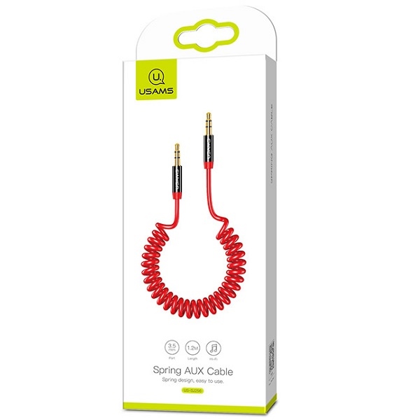 USAMS Adapteris Spring audio jack 3,5mm-3,5mm 1,2m raudonos spalvos SJ256YP02 (US-SJ256)