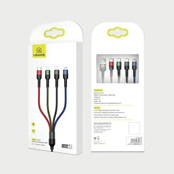 USAMS pintas kabelis U26 4in1 1.2m 2A Fast Charge (2xlightning/microUSB/USB-C) SJ317USB01 (US-SJ317)