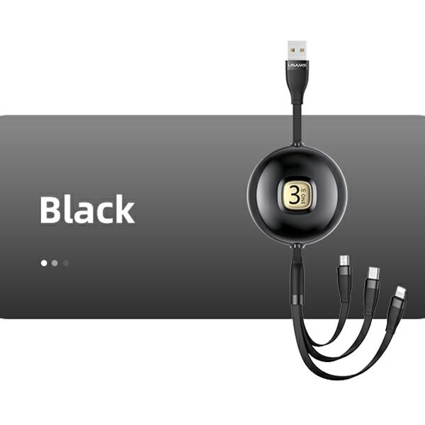 USAMS Kabelis U69 3in1 1m juodos spalvos (lightning/microUSB/USB-C) SJ508USB01 (US-SJ508)