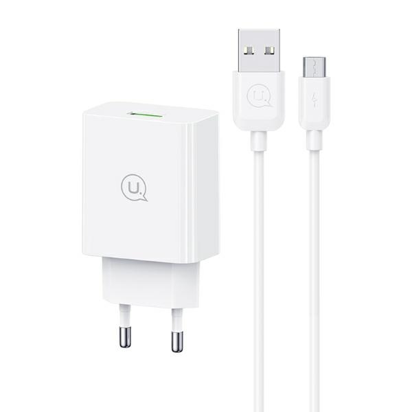 USAMS Laidinis įkroviklis 18W + kabelis Micro/USB-A 1m Fast Charging baltos spalvos series SC SCXLTZ01