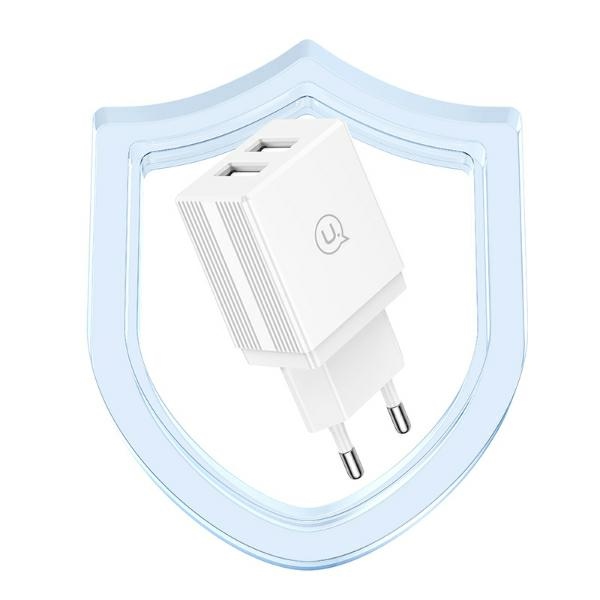 USAMS Laidinis įkroviklis 2xUSB-A + kabelis Micro/ USB-A Fast Charging baltos spalvos series HC HCXLTZ02