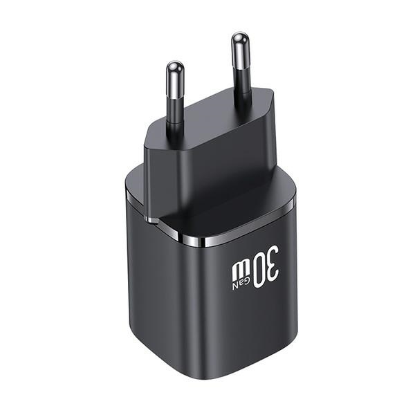 USAMS Laidinis įkroviklis CC254 30W GaN USB-C/USB-A Fast Charging HC Series juodos spalvos CC254TC01