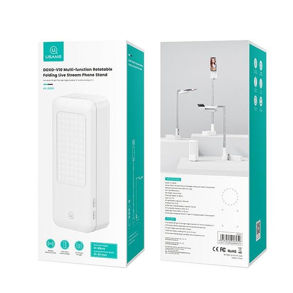 USAMS multifunkcinis telefono laikiklis su LED lempa baltos spalvos ZB26501 (US-ZB265)