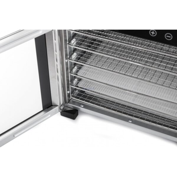 taip pat 6 džiovinimo padėklų. Nekenksminga medžiaga, kuriai nereikia jokios papildomos priežiūros ir pasižymi ypač dideliu patvarumu, labai gerai tinka džiovyklei. Taip pat ji pasižymi elegantiška ir profesionalia išvaizda.