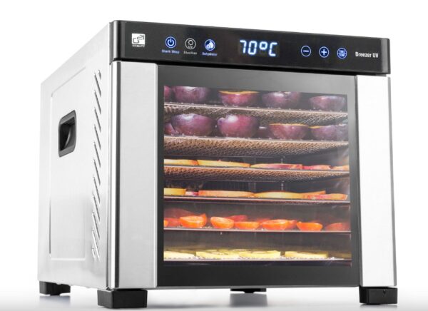 Skirtingai nuo įprastų džiovyklių, „G21 Breezer“ maisto džiovyklė taip pat turi nerūdijančio plieno dureles , kurios užtikrina mažesnes energijos sąnaudas, puikią oro cirkuliaciją, efektyvesnį džiovinimą ir sutrumpina maisto džiovinimo laiką. Kad džiovinimo metu nereikėtų atidaryti durelių ir į džiovyklę nepatektų šaltas oras, joje įrengėme langelį . Tokiu būdu galite greitai ir lengvai patikrinti džiovintų vaisių, daržovių, žolelių, grybų ar mėsos būklę. Dėl durelių taip pat galite išimti bet kokį skardų skaičių ir džiovinti ant mažesnio skaičiaus, nesijaudindami dėl džiovinimo kokybės pablogėjimo.