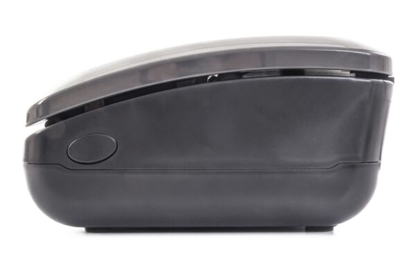 - Spalvų dizainas: juodas korpusas, pilkas dangtis