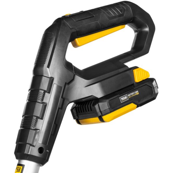 - Pridedamas akumuliatorius ir įkroviklis suderinamas su visais TEXAS 20V serijos įrankiais (gyvatvorių žirklėmis, pūstuvais, žoliapjovėmis, grandininiais pjūklais, vejapjovėmis ir kitais įrankiais).