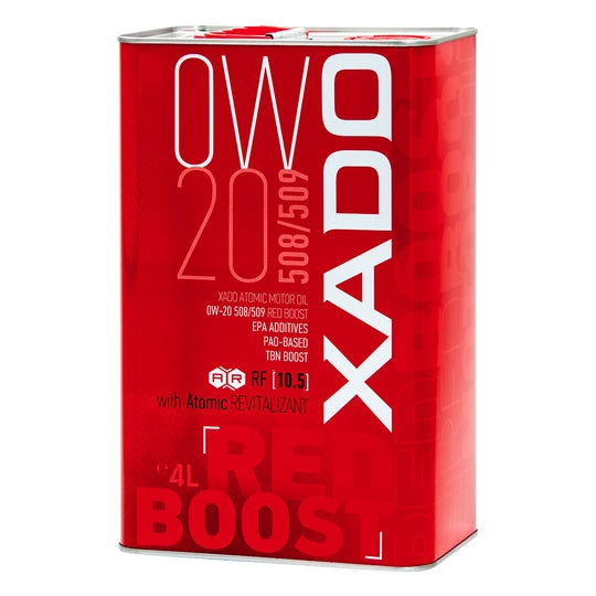 XADO Atomic Oil 0W-20 508/509 RED BOOST moderni aukštos kokybės variklinė alyva su padidintu revitalizanto koeficientu (10,5) ir Red boost komponentu, skirtu stabilizuoti bendrą alyvos bazinį skaičių (neleidžia alyvai nusidėvėti vykstant didelėms apkrovoms ir temperatūros pokyčiams, kurie dažniausiai gali atsitikti mieste su nuolatiniais kamščiais ir „start-stop” režimu).