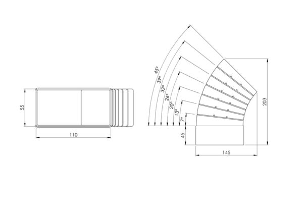 Ventiliacijos alkūnė EUROPLAST KLH15-60 110 x 55mm 15–60°