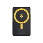The power bank is equipped with 6 safety protection systems and includes a USB-C cable and a magnetic metal ring for a secure hold of your device.