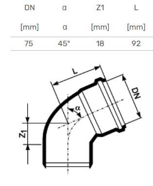 Prekės ženklas- Magnaplast. Modelis- HTplus. Santechninė jungtis, skersmuo- 75 mm, 75 mm. Pasvirimo kampas- 45 – 45°. Lanksti- Ne. Medžiaga- Polipropilenas (PP). Spalva- Pilka. Skirta naudoti- Vidaus kanalizacijai. Papildoma informacija- Medžiaga: polipropilenas (PP). Skersmuo: 75 mm. Kampas: 45°. Spalva: pilka.