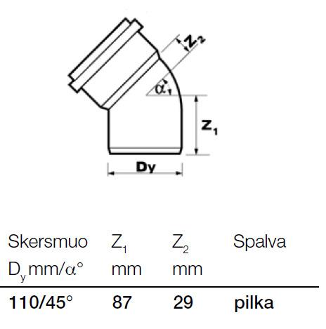 Prekės ženklas- Wavin. Modelis- Optima . Santechninė jungtis, skersmuo- 110 mm, 110 mm. Pasvirimo kampas- 45 – 45°. Lanksti- Ne. Medžiaga- Polivinilchloridas (PVC). Spalva- Pilka. Skirta naudoti- Vidaus kanalizacijai. Papildoma informacija- Medžiaga: polivinilchloridas (PVC). Skersmuo: 110 mm. Kampas: 45°. Spalva: pilka.