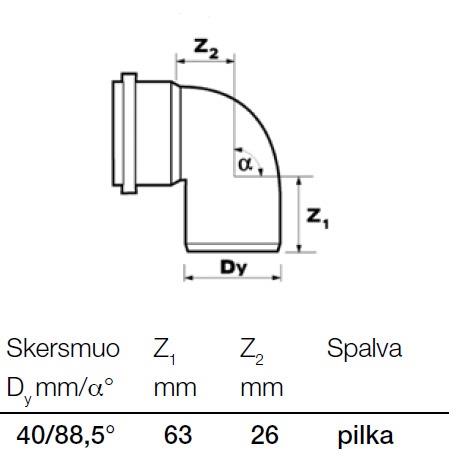 Prekės ženklas- Wavin. Modelis- Optima . Santechninė jungtis, skersmuo- 40 mm – Movinis galas, 40 mm – Lygus galas. Pasvirimo kampas- 88.5 – 88.5°. Lanksti- Ne. Medžiaga- Polipropilenas (PP). Spalva- Pilka. Skirta naudoti- Vidaus kanalizacijai. Papildoma informacija- Medžiaga: polipropilenas. Skersmuo: 40 mm. Kampas: 90°. Spalva: pilka.