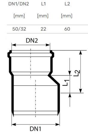 Prekės ženklas- Magnaplast. Modelis- HTplus. Santechninė jungtis, skersmuo- 50 mm – Lygus galas, 32 mm – Movinis galas. Medžiaga- Polipropilenas (PP). Spalva- Balta. Skirta naudoti- Vidaus kanalizacijai. Papildoma informacija- Medžiaga: polipropilenas. Skersmuo: 32/50 mm. Spalva: balta.