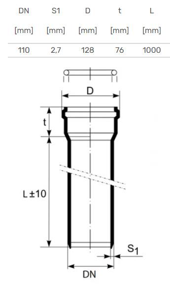 Prekės ženklas- Magnaplast. Skersmuo- 110 mm. Santechninė jungtis, skersmuo- 110 mm – Lygus galas, 110 mm – Movinis galas. Sienelės storis- 2.7 mm. Ilgis- 1 m. Triukšmo lygis- 26 dB. Medžiaga- Polipropilenas (PP). Didžiausia pastovių nuotekų temperatūra- 90 °C. Spalva- Pilka sp.. Papildoma informacija- Medžiaga: polipropilenas. (PP) Skersmuo: 110 mm. Spalva: pilka. Skirta naudoti- Vidaus kanalizacijai.