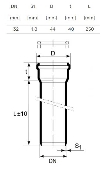 Prekės ženklas- Magnaplast. Skersmuo- 32 mm. Santechninė jungtis, skersmuo- 32 mm – Movinis galas, 32 mm – Lygus galas. Sienelės storis- 1.8 mm. Ilgis- 0.25 m. Triukšmo lygis- 26 dB. Medžiaga- Polipropilenas (PP). Didžiausia pastovių nuotekų temperatūra- 90 °C. Spalva- Balta. Skirta naudoti- Vidaus kanalizacijai.