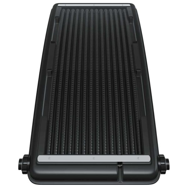 Ši saulės energija maitinama šildymo sistema yra pagaminta iš aukštos kokybės medžiagų, kurios yra patvarios atlaikyti nuolatinį saulės poveikį ir lauko sąlygas. Lenktos baseino šildymo plokštės ir reguliuojamos kojelės užtikrina didžiausią plotą saulės energijai kaupti, o tai padidina šildymo efektyvumą.