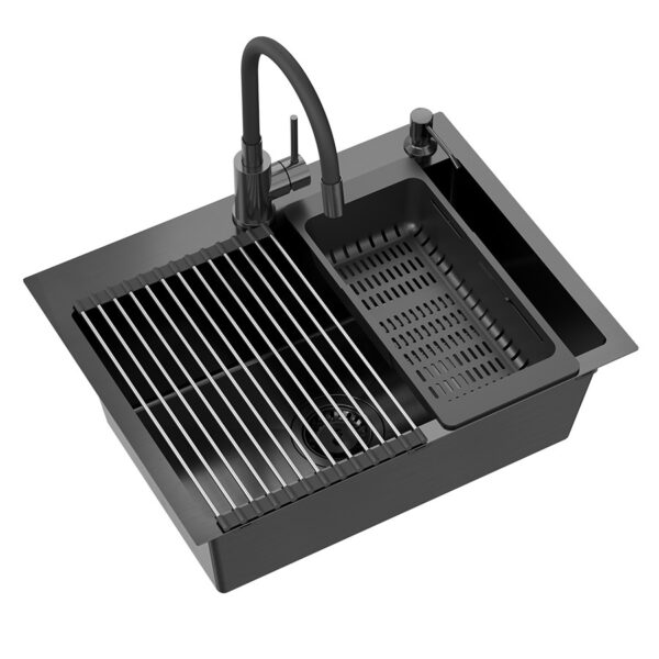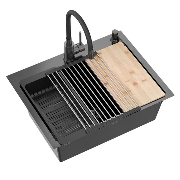 Virtuvės plautuvė su sifonu, 1 dubuo b/o + Qmat + įdėklas + dozatorius + medinė lenta + maišytuvas s
