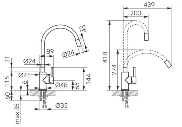 Virtuvinis maišytuvas Ferro Zorba Inox BZR4PSS