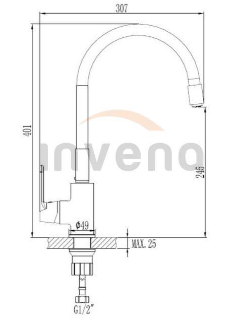 Prekės ženklas- Invena. Modelis- BZ-32-P04-C. Montavimo tipas- Montuojamas ant paviršiaus. Ilgis- 30.7 cm. Aukštis- 40.1 cm. Spalva- Juoda. Medžiaga- Žalvaris. Kasetė/maišymo sistema (cartridge)- 2.5 cm. Pralaidumas- 11 l/min. Rankenėlių skaičius- 1. Ištraukiama galvutė- Ne. Lanksti galvutė- Taip. Dugno vožtuvas komplekte- Ne. Garantija- 24 mėn. Papildoma informacija- Lengvai ir greitai surenkamas. Su vandenį taupančiu aeratoriumi..