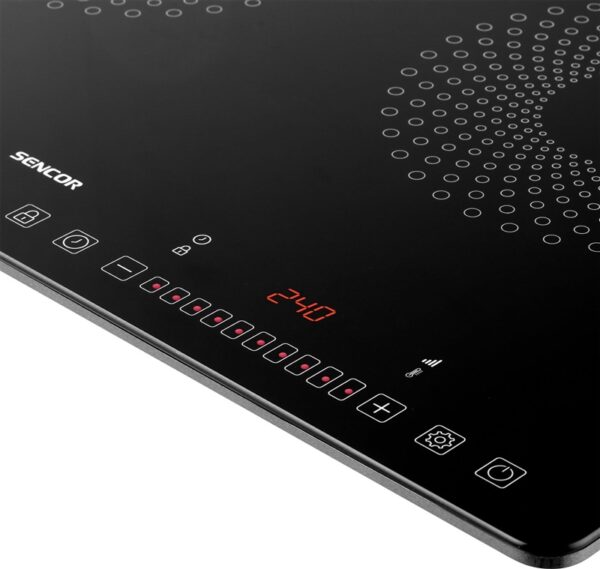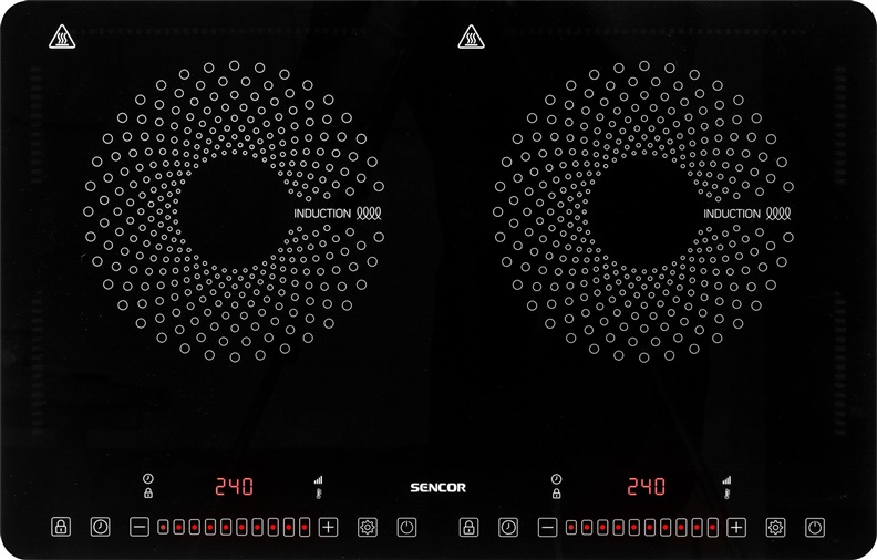 Prekės ženklas- Sencor. Modelis- SCP 4501BK. Plotis- 56 cm. Gylis- 36 cm. Aukštis- 4.3 cm. Spalva- Juoda. Svoris- 4.56 kg. Galia- 3400 W. Kaitlentės tipas- Indukcinė. Kaitlentės paviršius- Stiklo keramika. Kaitviečių skaičius- 2. Kaitviečių galia- 200-2000W. Valdymas- Sensorinis. Apsauga nuo perkaitimo- Taip. Viryklės dangtis- Be dangčio. Laikmatis- Ne. Ekranas- Ne. Garantija- 24 mėn. Papildoma informacija- Danga neleidžianti likti pirštų antspaudams..