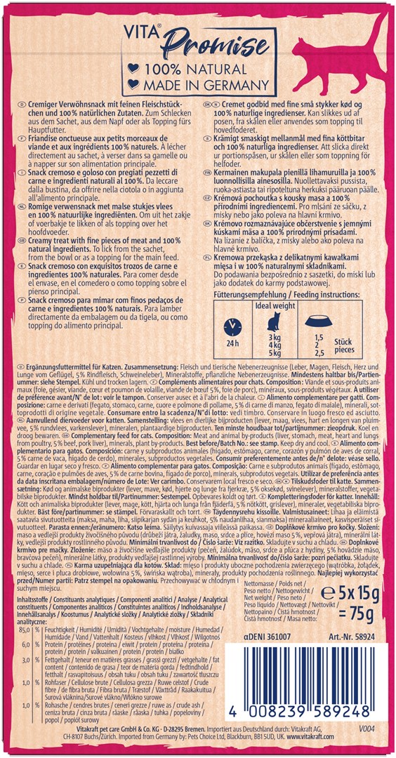 VITAKRAFT VITA NATURALS Skysta jautiena – skanėstas katėms – 5×15 g