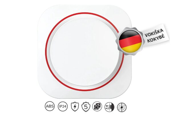 - Kartu su ventiliatoriumi komplektacijoje yra keturi dekoratyviniai žiedai (baltas, raudonas, geltonas, žalias, mėlynas).