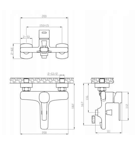 Vonios maišytuvas Invena Invena, juodas/chromo