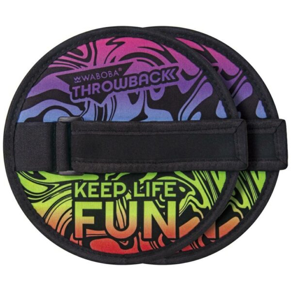 The Waboba Throwback set includes two lightweight textile paddles with hook-and-loop surfaces and a special catching disc. The soft fabric-covered disc sticks to the paddle with every successful catch, bringing great satisfaction and making it easy even for the youngest players to start playing right away. The adjustable straps keep the paddles secure and comfortable, preventing slipping during play for users of all ages.